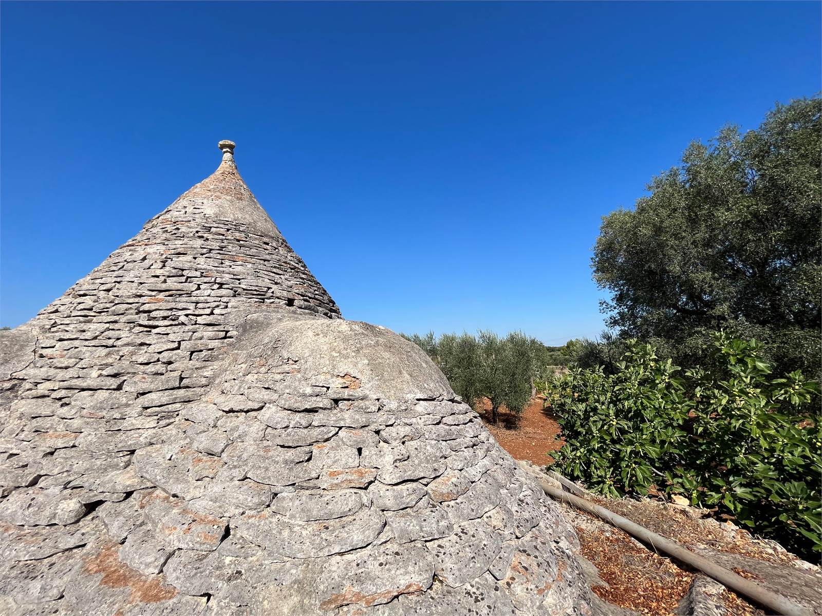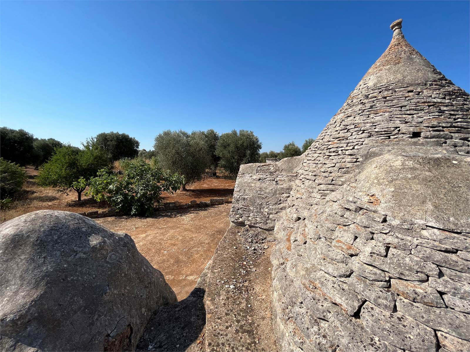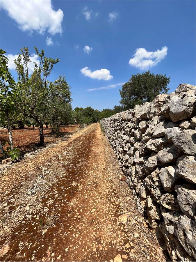 Il trullo è immerso in un terreno di circa un ettaro, interamente recintato con tradizionale muretto a secco, impreziosito dalla presenza di maestosi alberi di ulivo secolari, che regalano un'atmosfera autentica e suggestiva tipica della campagna pugliese.